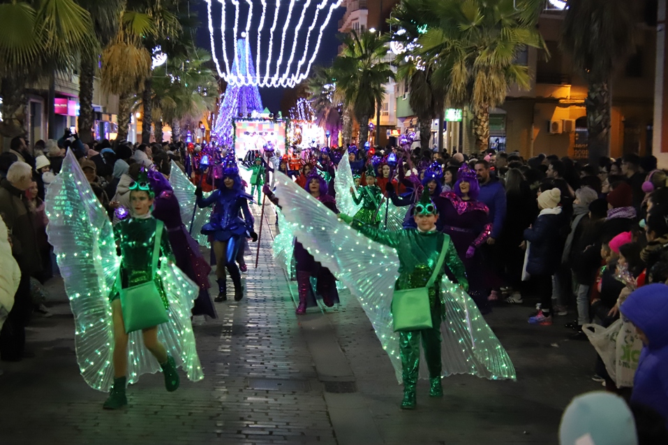 La asociación juvenil ‘Talayot’ con numerosos personajes del mundo infantil, la Asociación de Motos de Otra Época (AMOE) con una carroza de pajes reales y la peña ‘L@s que faltaban’ con una alegoría del árbol de Navidad, con bolas que iban realizando una coreografía, precedieron el paso de los Reyes Magos.