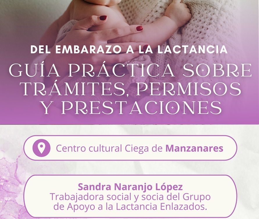 Manzanares acogerá el próximo jueves 26 de marzo, a las 17:30 horas, la charla informativa “Del embarazo a la lactancia: Guía práctica sobre trámites, permisos y prestaciones”, una iniciativa organizada por la Asociación Oro Blanco, grupo de apoyo a la lactancia materna, en colaboración con el Grupo de Apoyo Enlazados.